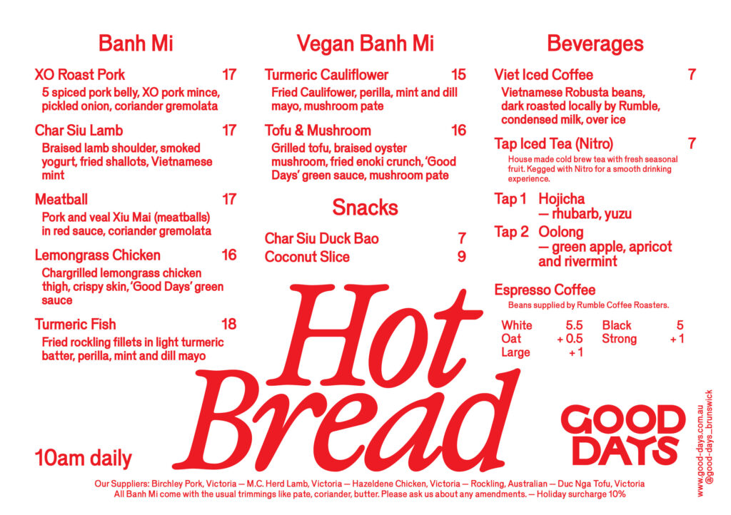 Good Days Hot Bread, our considered interpretation of the classic Australian Vietnamese bakeries found all across the country.