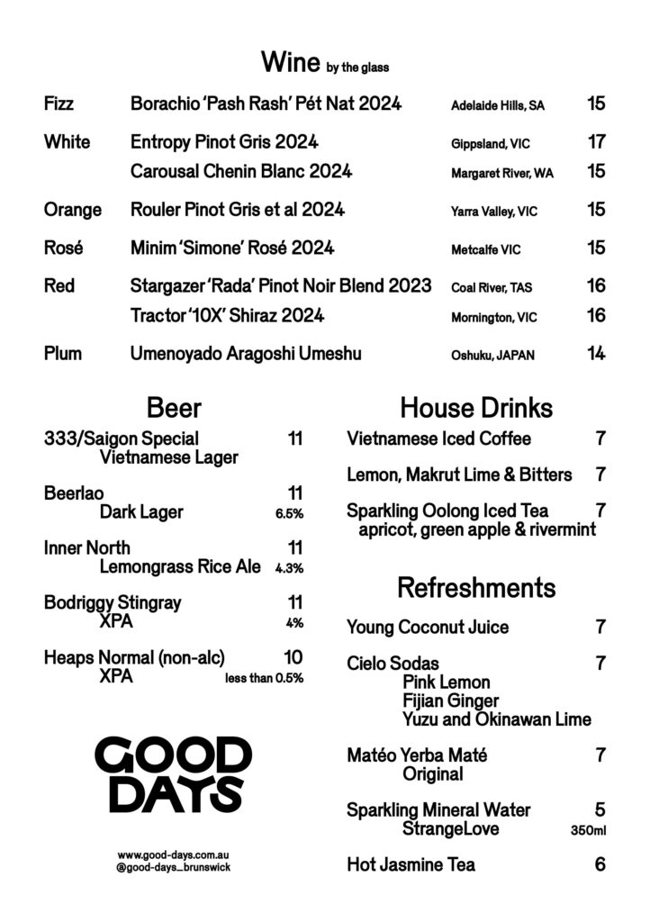 The original Good Days, established in 2016 in the heart of Brunswick on Sydney Road. A bright and modern reimagining of the Vietnamese phở house. Not only focusing strongly on our bone broth but offering house-snacks, bun and the almost ceremonial grade chicken broken rice.