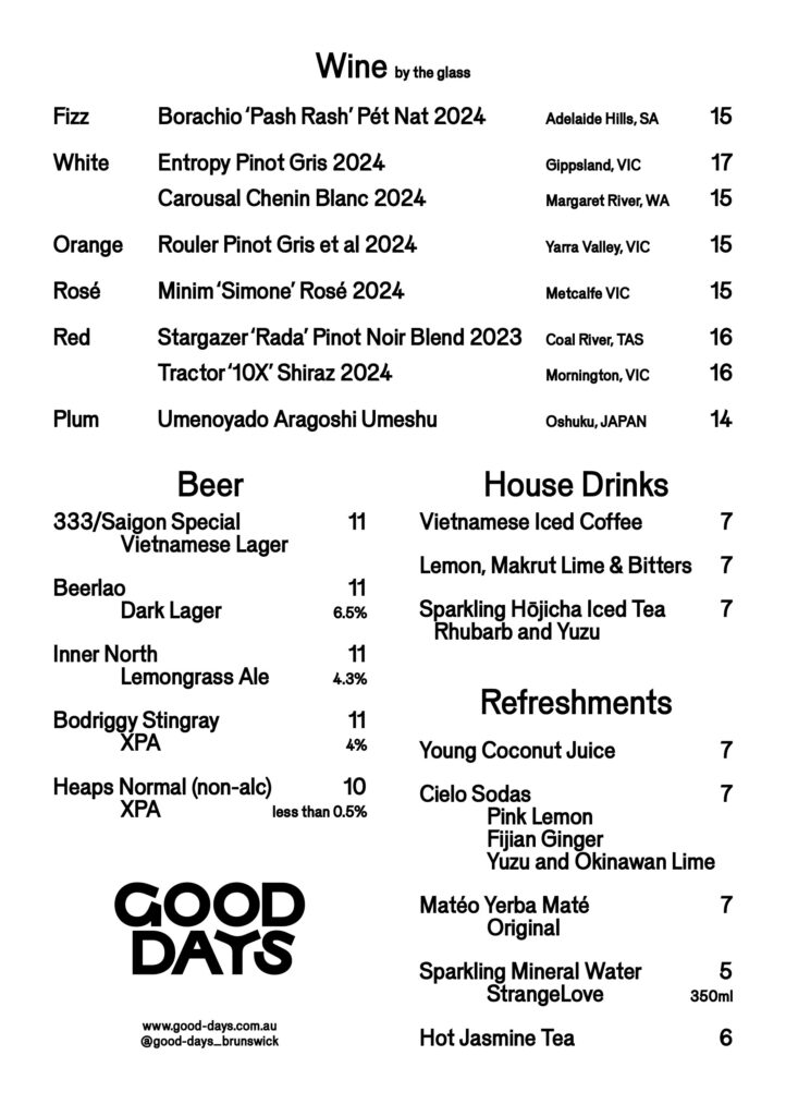 Set back from the tracks of the 86 on Smith Street Collingwood, is our newest adaptation of the spirit of Good Days carried forward, expanded into a menu with more stories to tell.